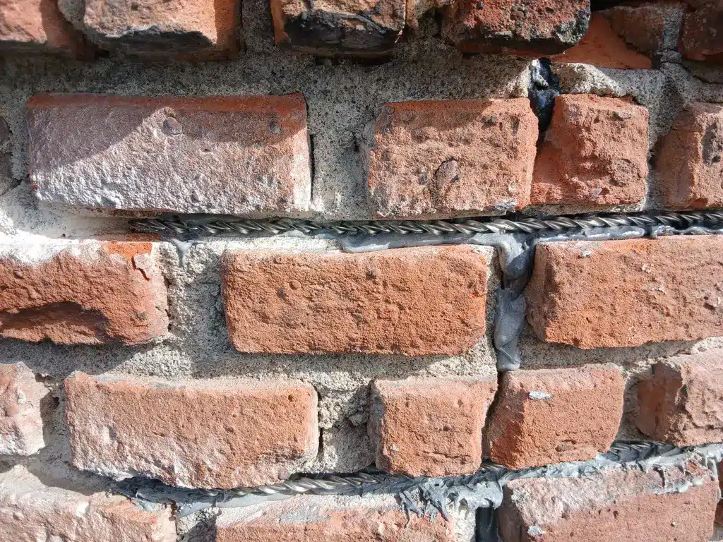 - Plaatsen van de ankers: De Thor Helical muurankers zijn in de sleuven aangebracht en volledig ingebed in een speciale, krimpvrije mortel. Deze mortel zorgt voor een perfecte hechting tussen de stalen ankers en het bestaande metselwerk.